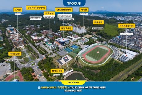 Với hệ thống 6 Cơ sở hiện đại và chuyên biệt hóa, Đại học Quốc gia Gyeongsang (GNU) mang đến một hệ sinh thái giáo dục toàn diện, từ nghiên cứu cơ bản đến ứng dụng công nghiệp và y khoa cao cấp. Dù bạn đam mê kinh doanh, kỹ thuật, y khoa hay yêu thích biển cả, GNU đều có một không gian lý tưởng dành riêng cho bạn.